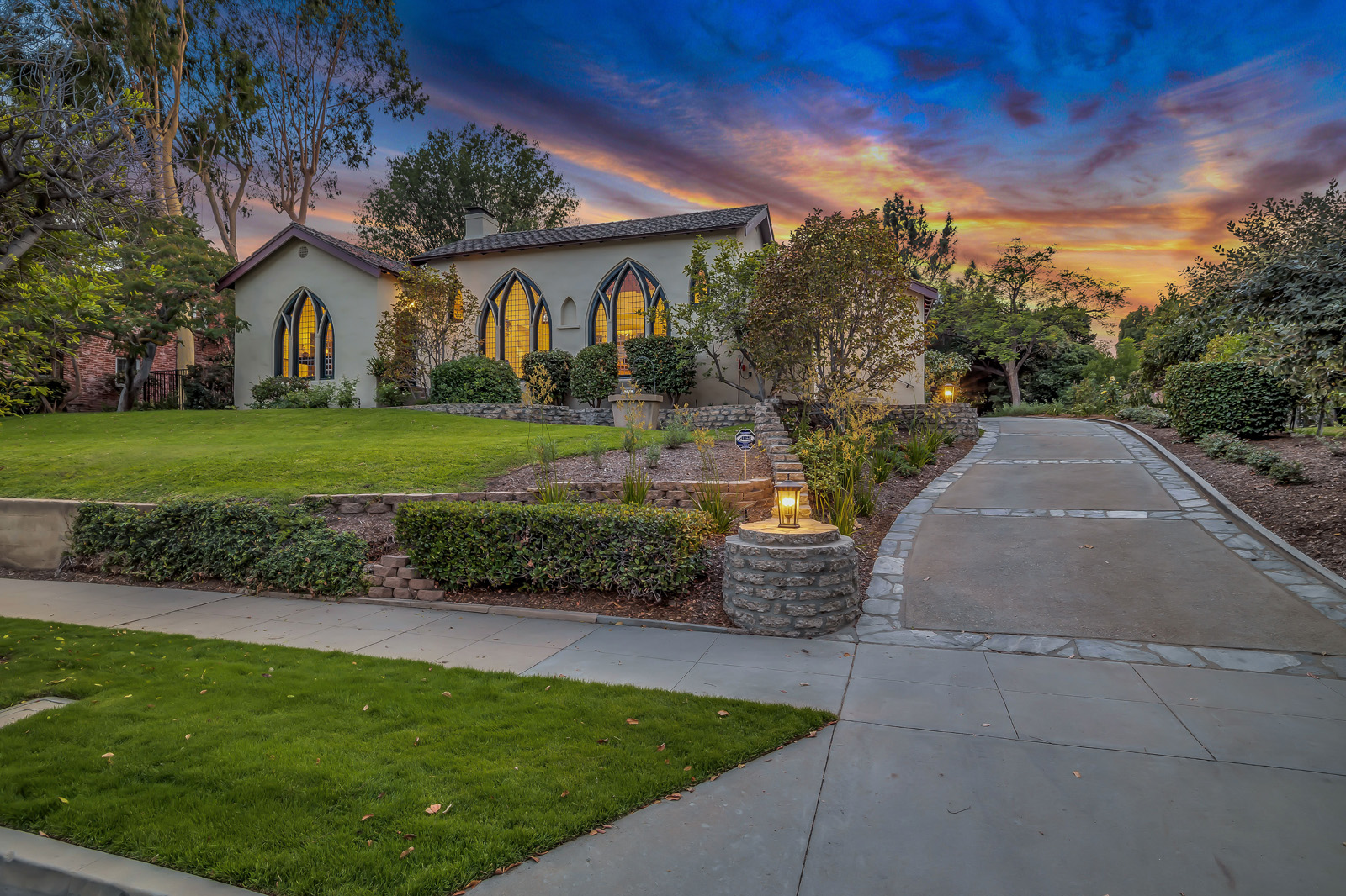 Enchanting fully remodeled 1928 European Country home designed by Ilustracion by Jake in San Marino. The family room includes high vaulted ceiling, ornate fireplace, Gothic arched style windows and original…