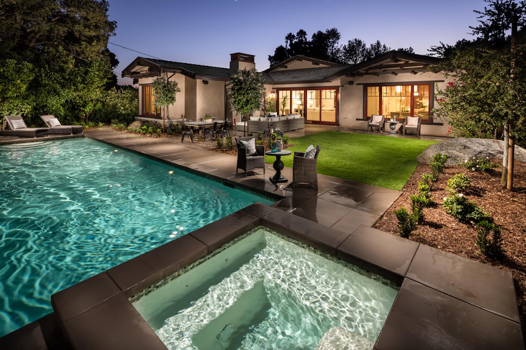 This remarkable 5800 square foot craftsman style home is located in the highly desired Arcadia Highland Oaks neighborhood. It sits on an 18,000+ square foot lot that features monumental oak trees and an extraordinary San Gabriel Mountain view. Designed by Robert Tong of Sanyao International Inc., this property consists of all suite bedrooms, a private designer home office, and a gym/yoga room. The lavishly designed home theater and wine tasting room is highlighted with reclaimed wood on the walls and ceiling. The master suite features a custom soaking tub and separate steam shower as well as dual generous sized walk-in closets. The spacious family room leads you to a beautifully designed expansive backyard with a pool, spa and fireplace. The gourmet kitchen boasts professional grade Wolf and subzero appliances, an oversized center island, and a separate wok kitchen. This exceptional property presents amazing craftsmanship in a prestigious area with award winning Schools!