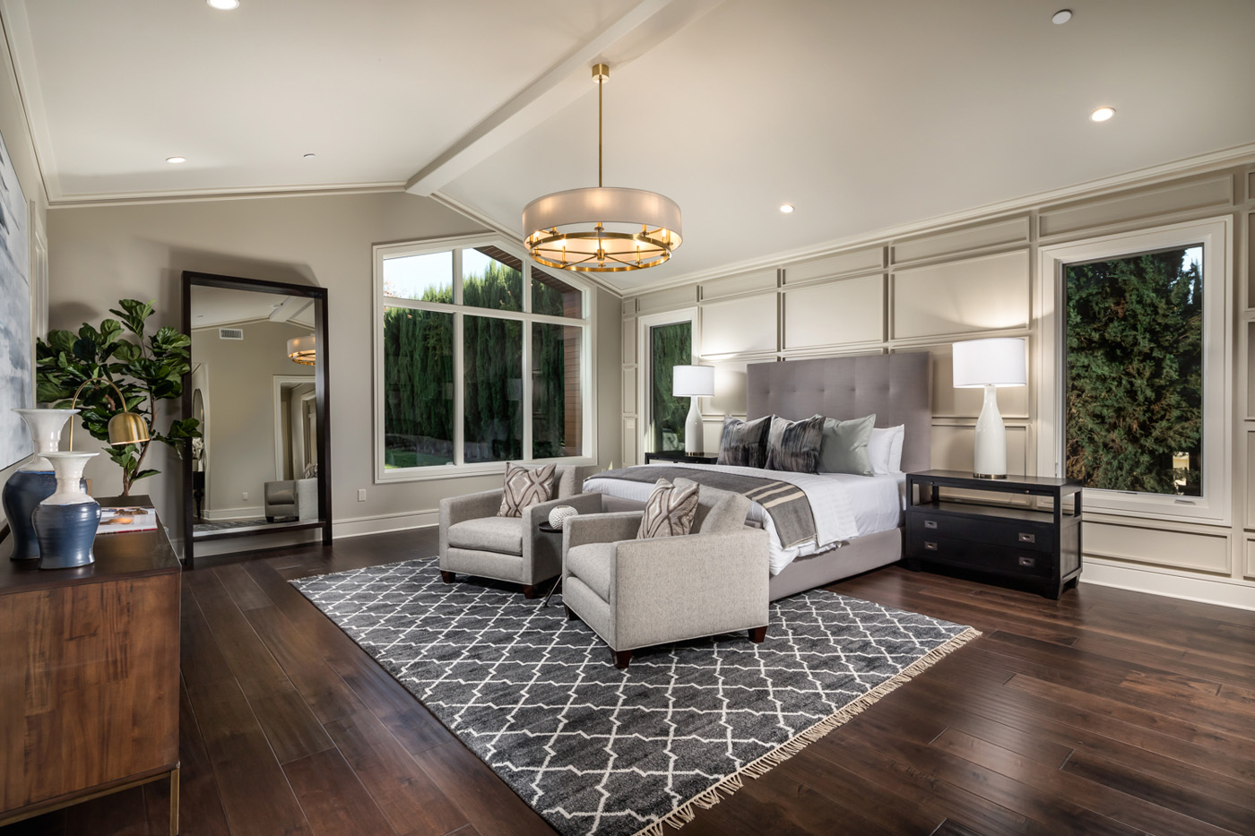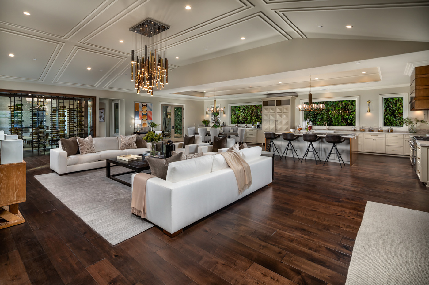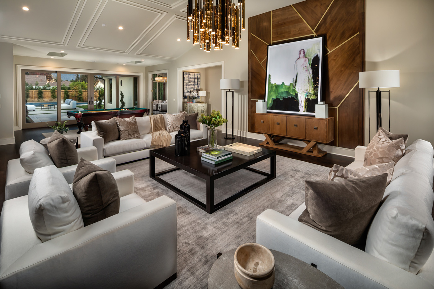 Designed by the famous Robert Tong, this South facing property with all suite bedrooms exudes quality finishes throughout. As you make your way through the ultra wide custom steel front door, you are greeted by a gorgeous foyer with beautiful chandeliers, marble flooring and baby grand piano. Wide hallways will take you to the grand family room and kitchen that overlooks the gleaming custom pool and spa. The all glass, climate-controlled 350+ bottle wine room, see through stone fireplace, designer ceilings enhanced with decorative wooden walls will create an aura that will be the talk of parties for years to come. Main level master suite features a walk-in closet, huge master bath with a soaking tub, expansive glass wall shower and imported tiles. The outside Loggia features a monumental oak tree with a wraparound bench and fireplace that are sure to become your favorite spot on the property. Bowden Development prides itself on innovative ideas and providing discerning buyers what they desire in the ever-changing housing market. Come Experience what real luxury feels like!